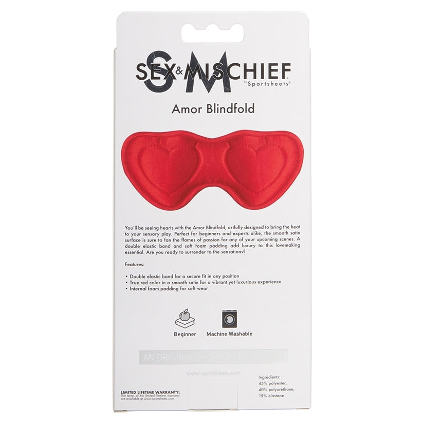 You’ll be seeing hearts with the Amor Blindfold, artfully designed to bring the heat to your sensory play. Perfect for beginners and experts alike, the smooth satin surface is sure to fan the flames of passion for any of your upcoming scenes. A double elastic band and soft foam padding add luxury to this lovemaking essential. Are you ready to surrender to the sensations.