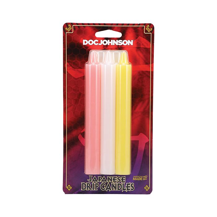Candles are wonderful for setting the mood, but they're even better for sensation play. These skin-safe Japanese Drip candles' warm drip teases and tantalizes in a way you will never forget. Each three-pack includes a Pink, Yellow, and White candle.